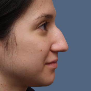 This patient was unhappy with the size and shape of her nose, feeling it was too large and crooked. She underwent rhinoplasty with Dr. Urbinelli, she is very happy with her results.