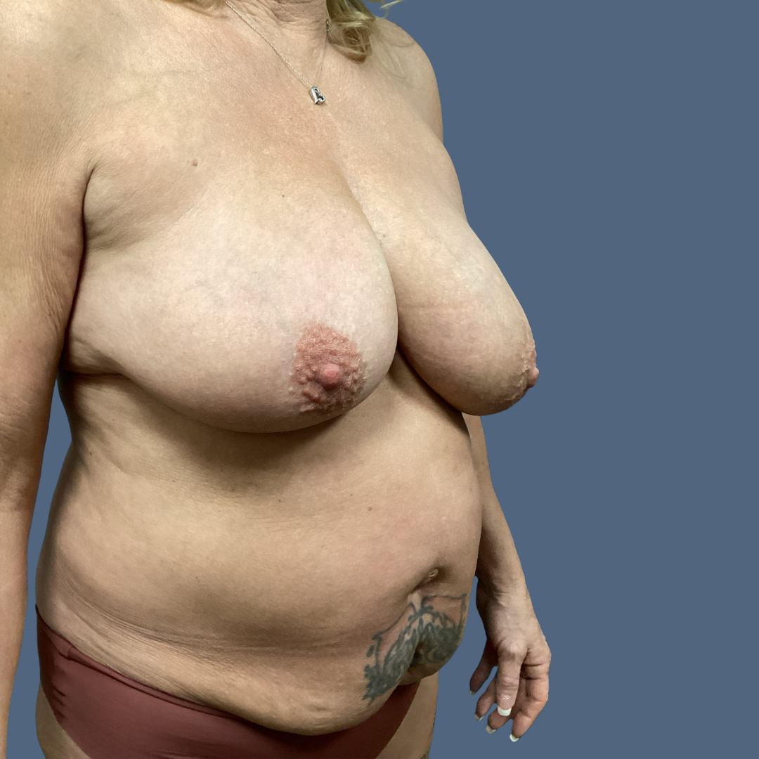 Dr. Ruter performed a mommy makeover for this patient, which is a comprehensive combination of surgical procedures tailored to achieve the patient’s specific aesthetic goals. In this case, the procedures included a tummy tuck and a breast lift. Photos were taken three months after the operation, and the shape of the breasts and scars will continue to improve over time. The patient is very happy with her results.
